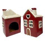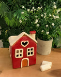 Ceramic Oil Burner In a House Design With Windows Cutout For Light To Shine Through.